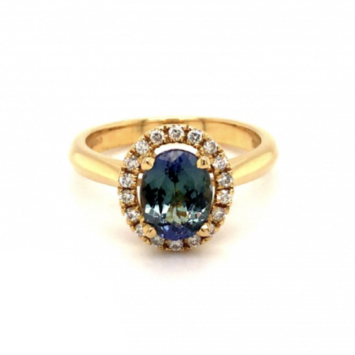 18ct Yellow Gold Green Tanzanite & Diamond Ring - Size M