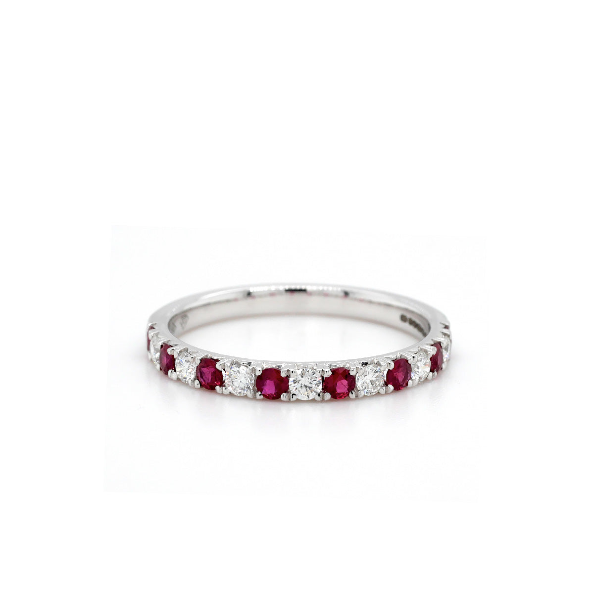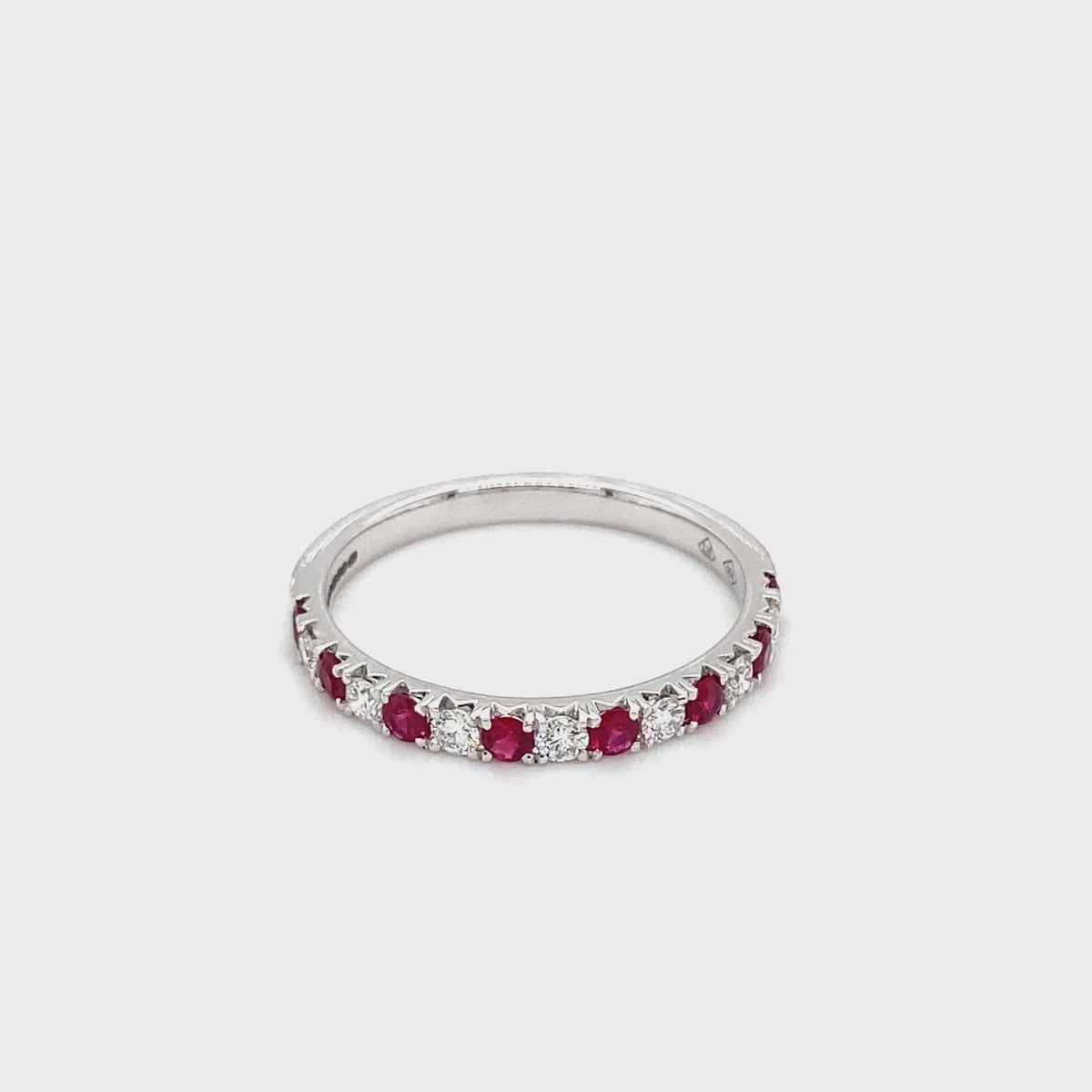 18ct White Gold 15 Stone Ruby and Diamond Castle Claw Eternity Ring