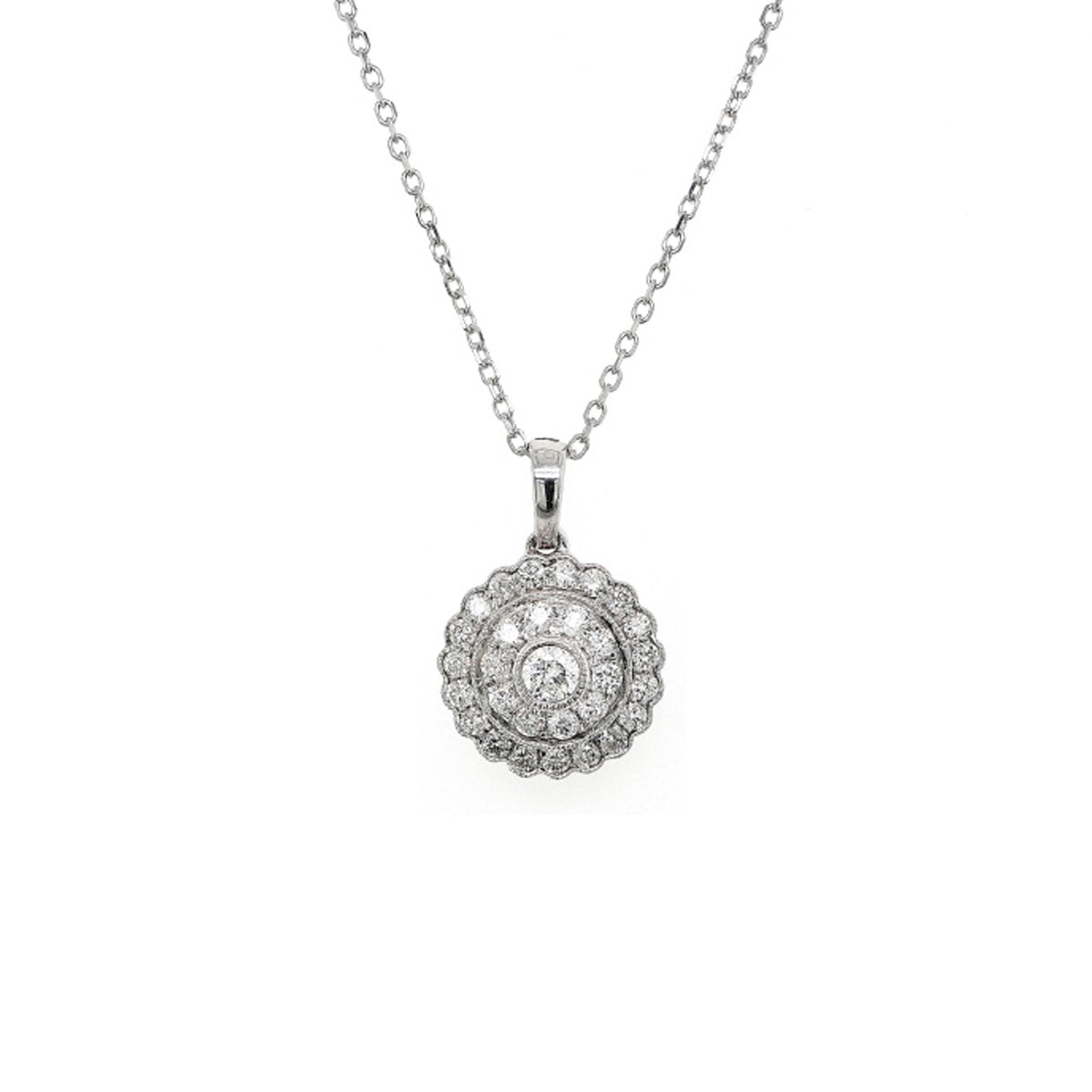 18ct White Gold Art Deco Diamond Cluster Pendant
