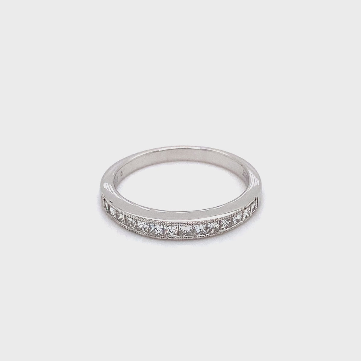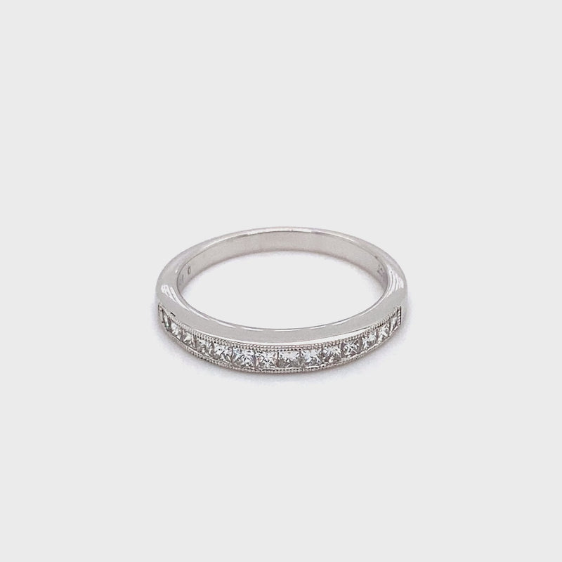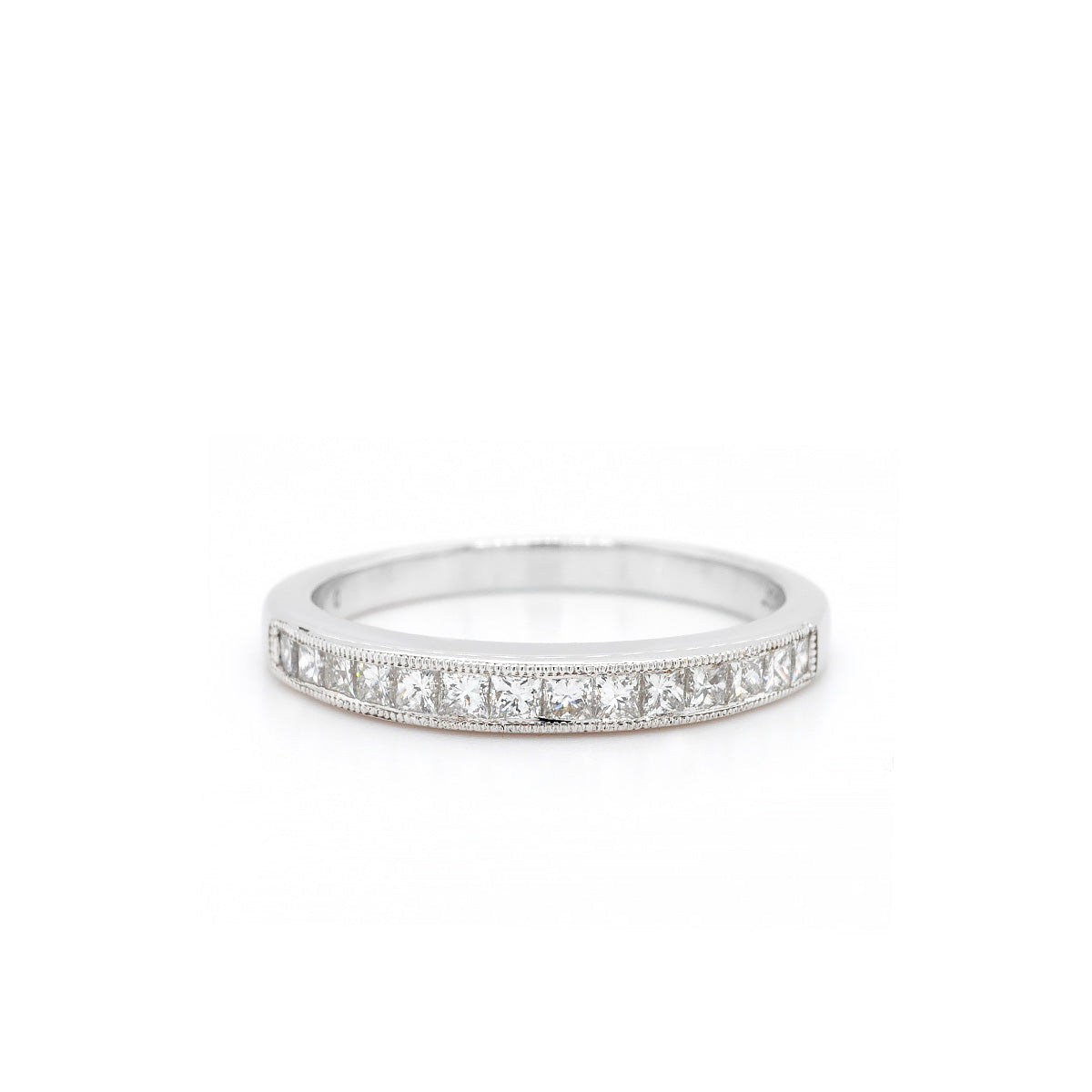 18ct White Gold Princess Cut Millgrain Diamond Ring