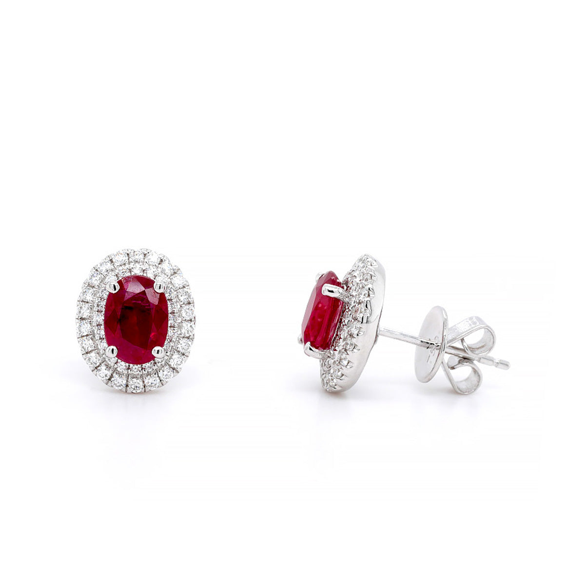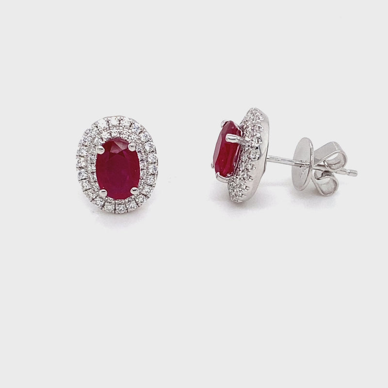 18ct White Gold Ruby and Diamond Cluster Halo Earrings