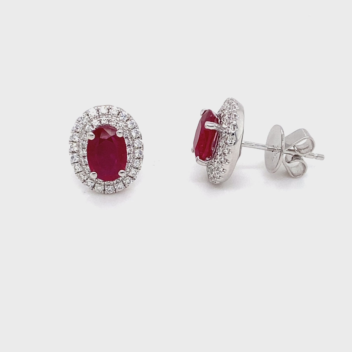 Add a touch of sophistication with our 18ct White Gold Ruby and Diamond Cluster Halo Style Earrings. These earrings feature vibrant rubies surrounded by a halo of dazzling diamonds, set in luxurious white gold.