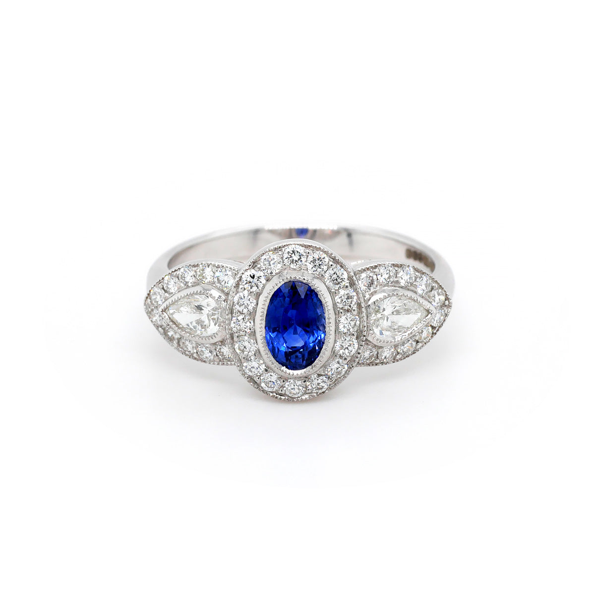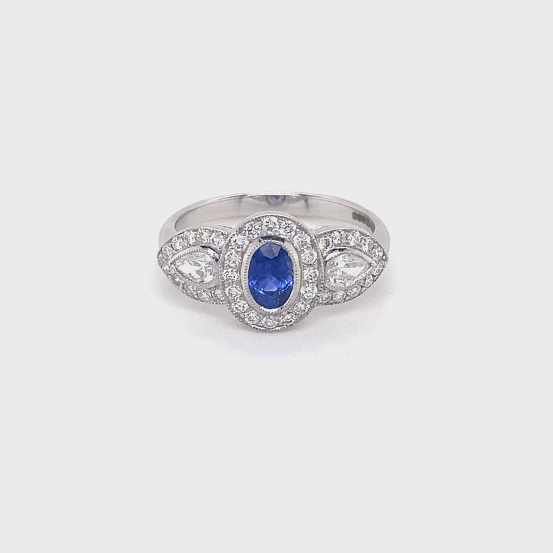 18ct White Gold Sapphire and Diamond Triple Deco Style Dress Ring