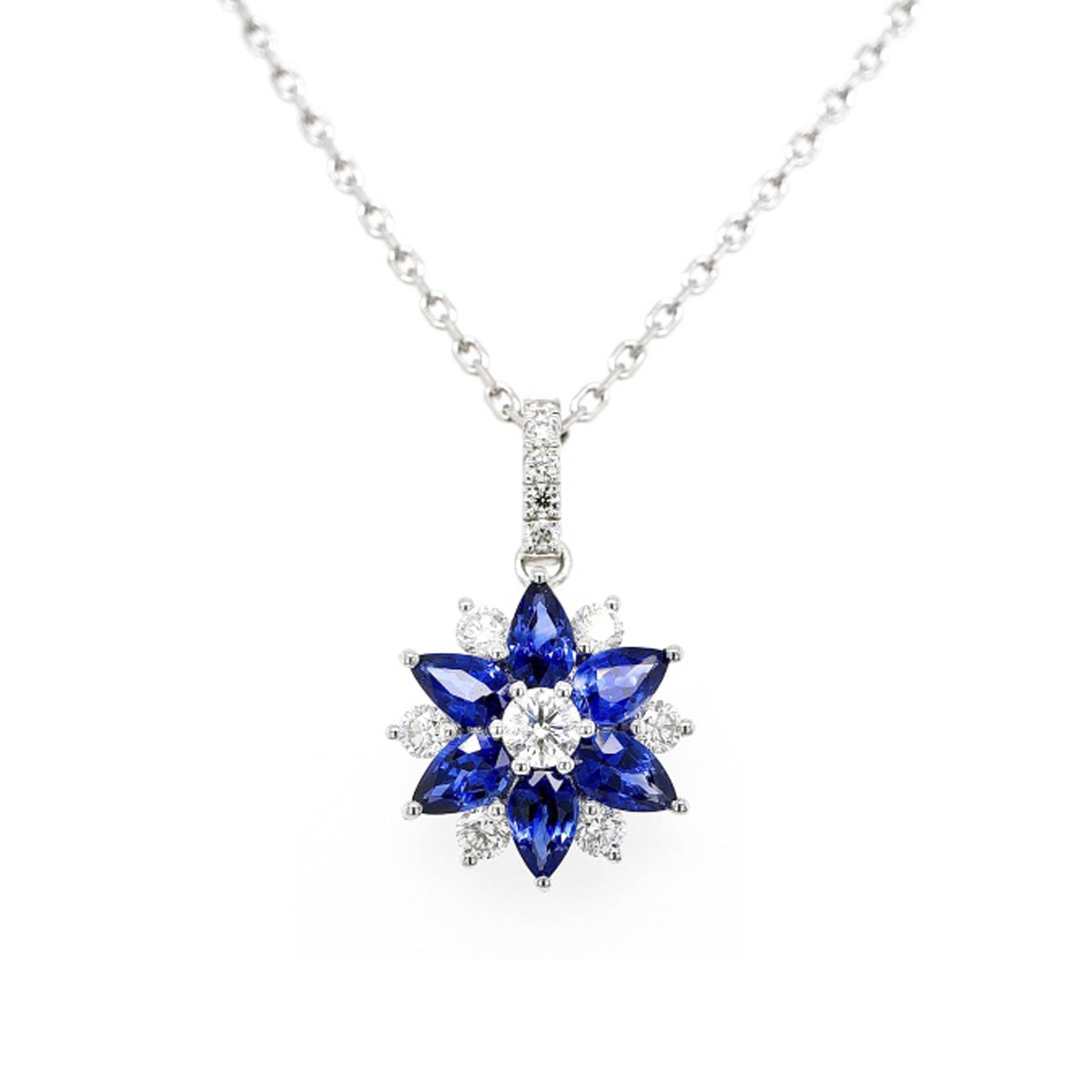18ct White Gold Sapphire & Diamond Flower Pendant