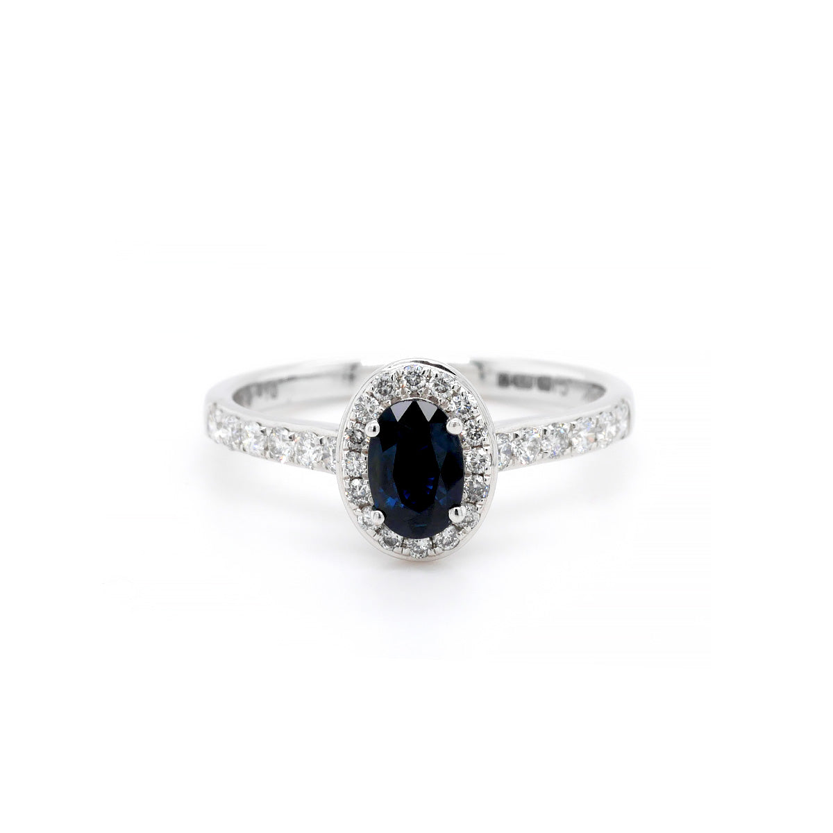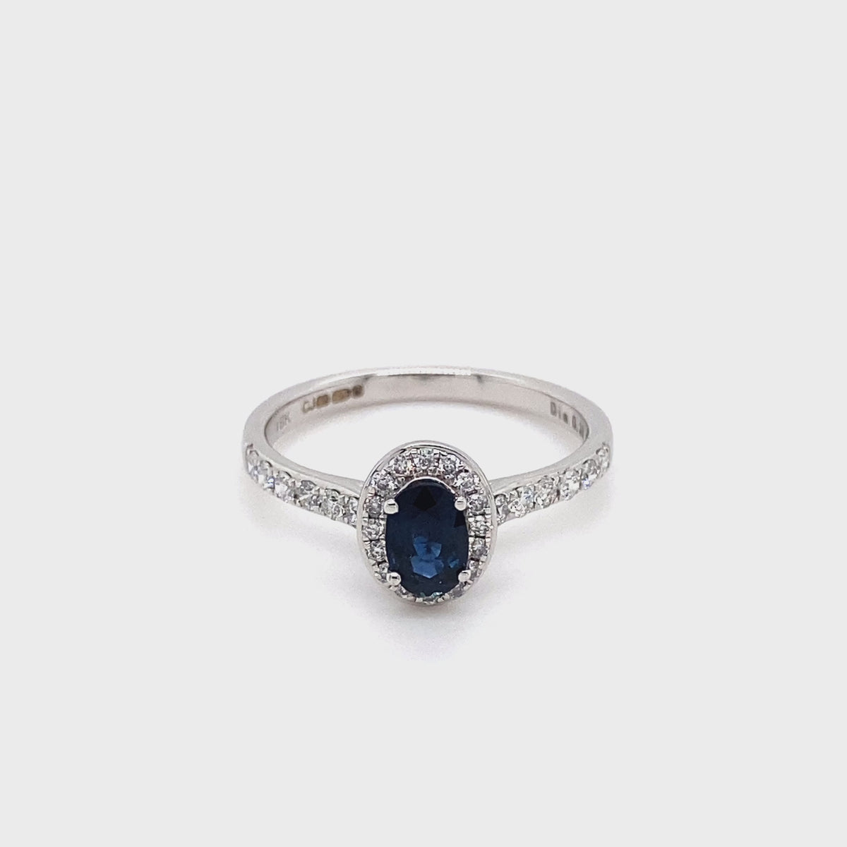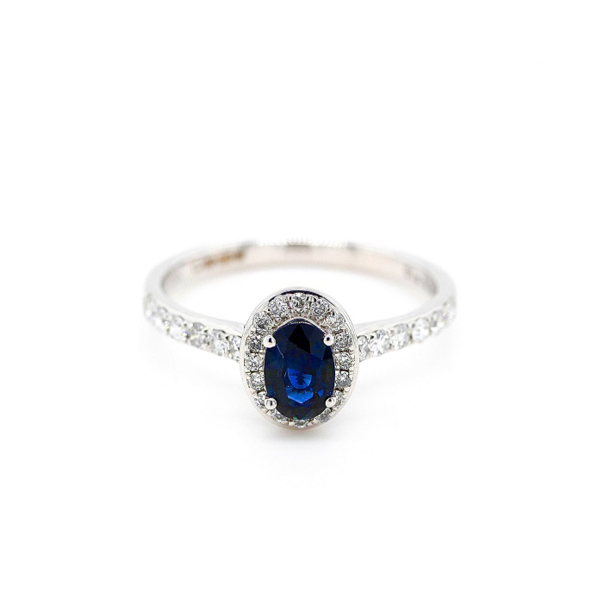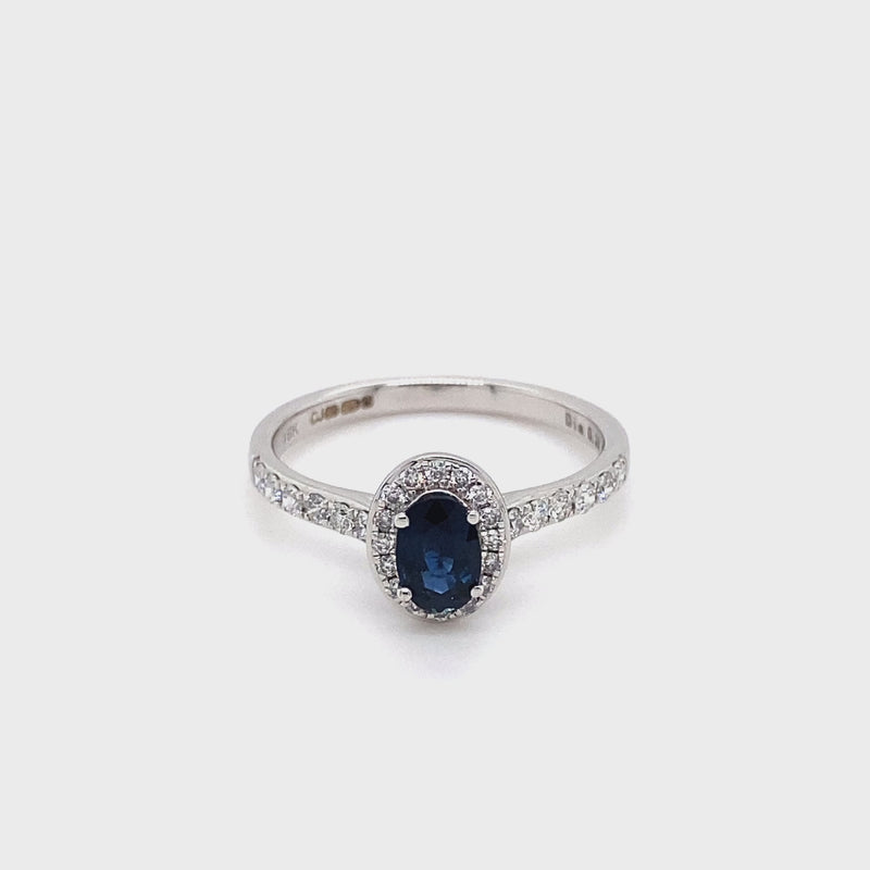 18ct White Gold Sapphire Diamond Oval Cut Halo Ring