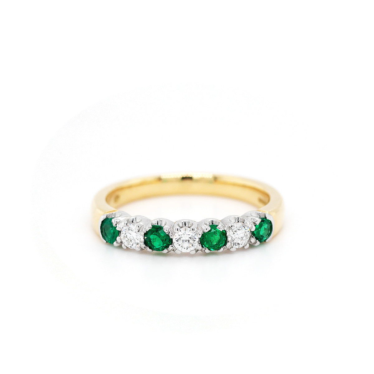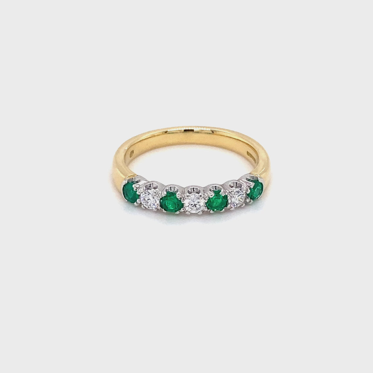 18ct Yellow And White Gold Emerald And Diamond Claw Set 7 Stone Ring