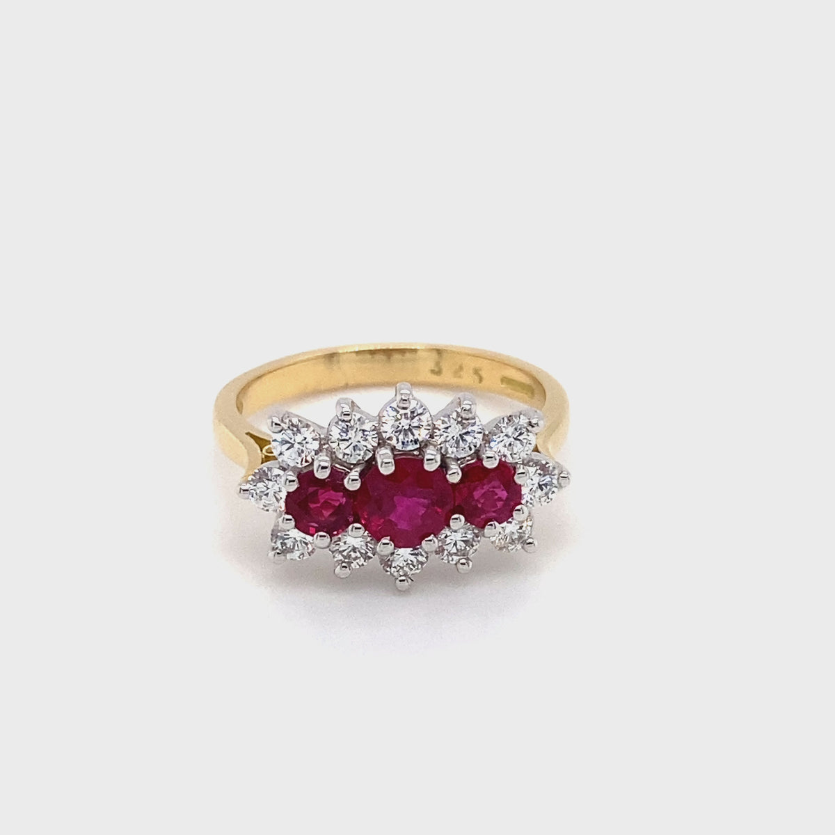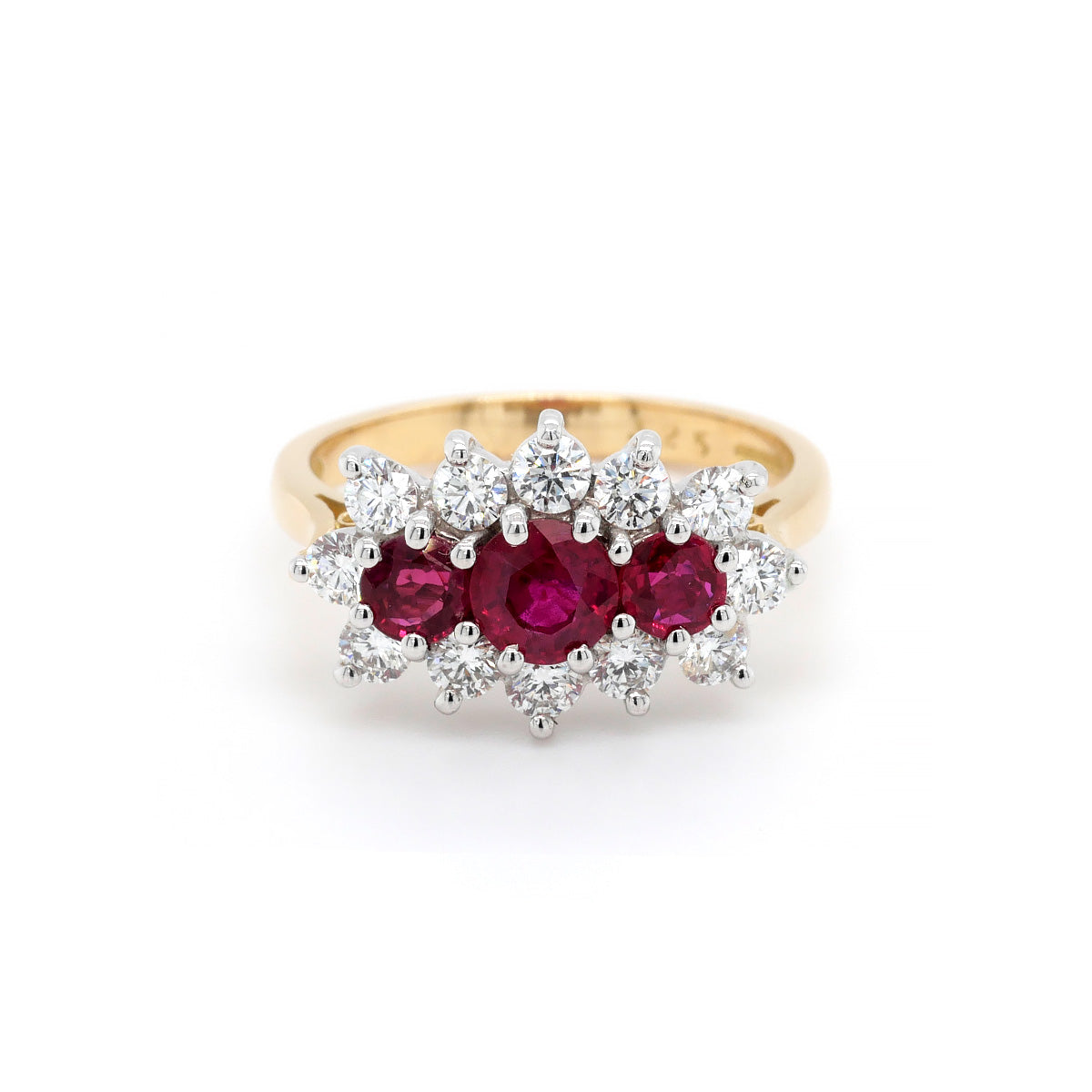 18ct Yellow and White Gold Ruby Diamond Cluster Ring