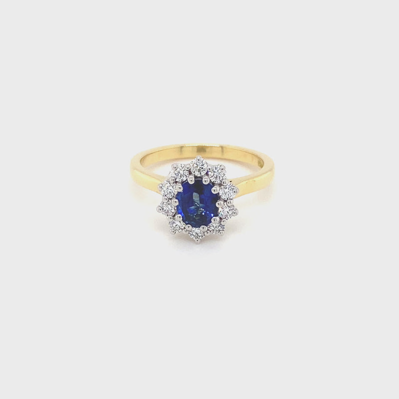 18ct Yellow & White Gold Sapphire & Diamond Cluster Ring - Size N