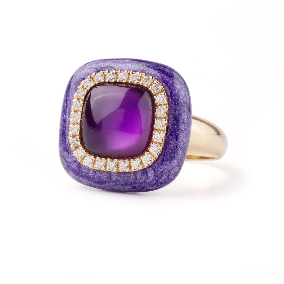 18ct Yellow Gold Square Amethyst Rock Crystal Diamond Ring