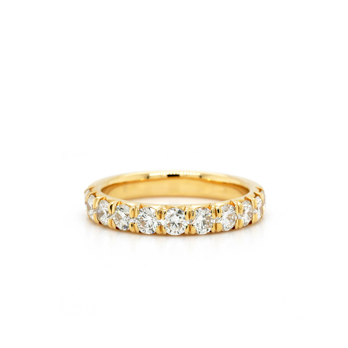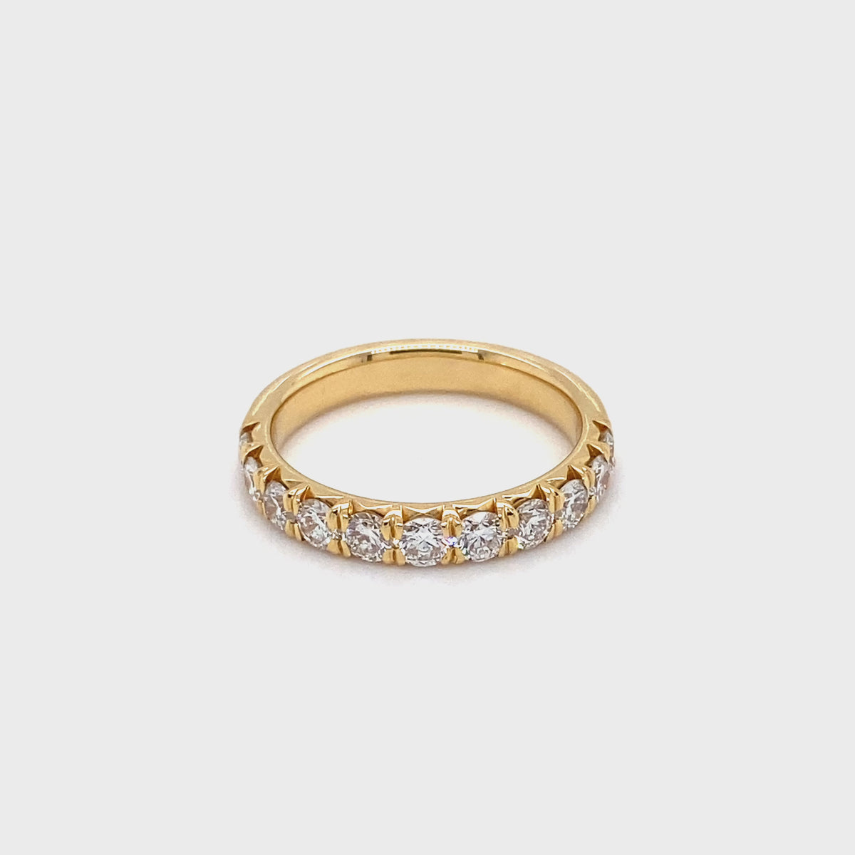Elevate your style with the exquisite 18ct Yellow Gold Diamond Half Eternity Ring. This stunning ring features a classic half eternity design adorned with round brilliant-cut diamonds, totalling 1.00 carat in weight. Each diamond is securely claw-set, ensuring durability and timeless elegance.