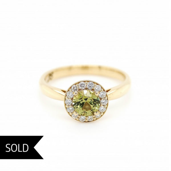 18ct Yellow Gold Grossular Andrite Garnet and Diamond Ring