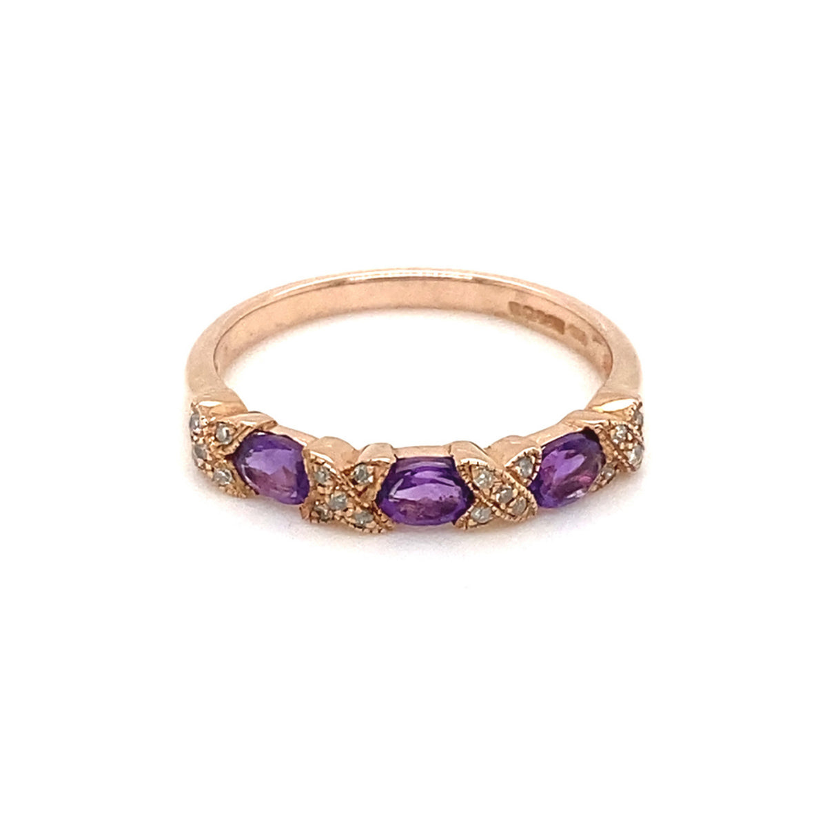 9ct Rose Gold Amethyst & Diamond Crossover Ring