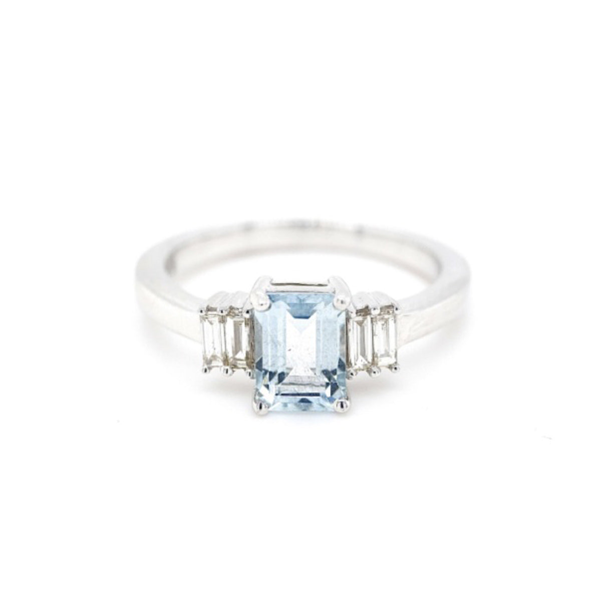 9ct White Gold Diamond & Aquamarine 5-Stone Ring