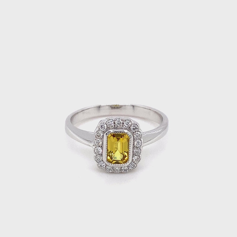 9ct White Gold Yellow Sapphire and Diamond Cluster Ring
