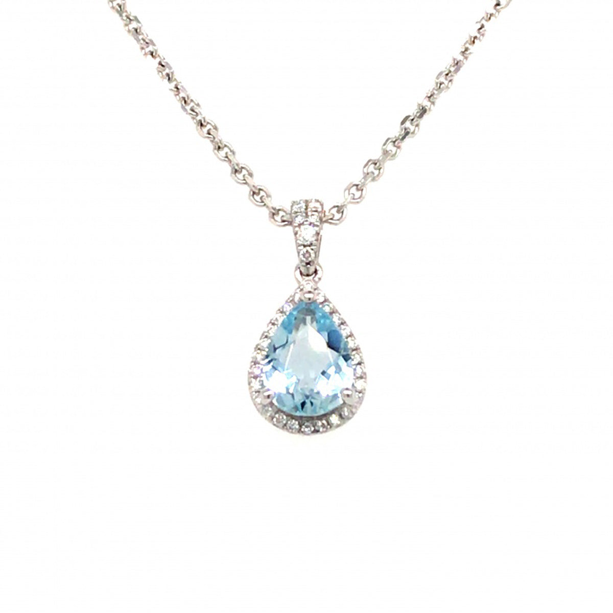 18ct White Gold Aquamarine & Diamond Teardrop Pendant