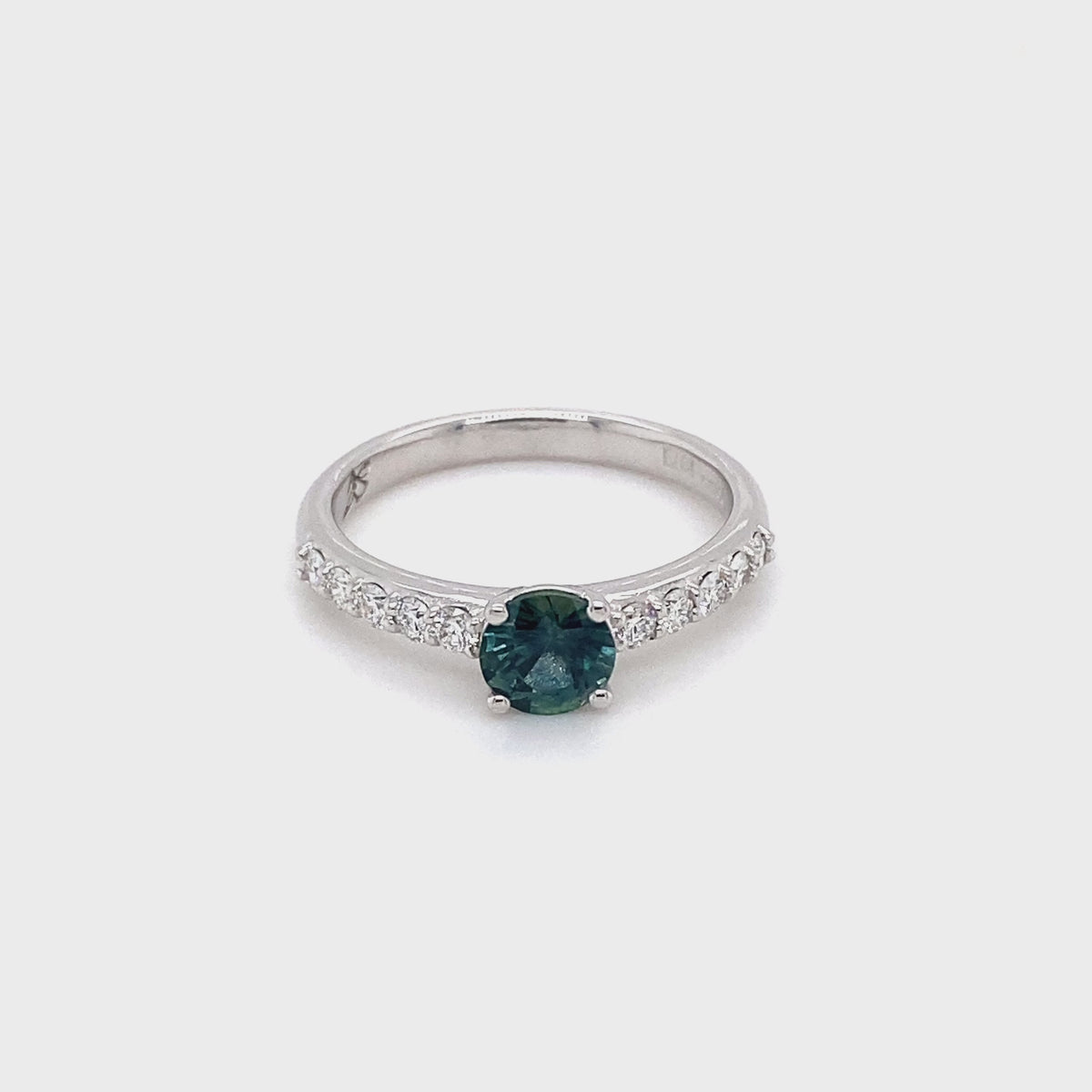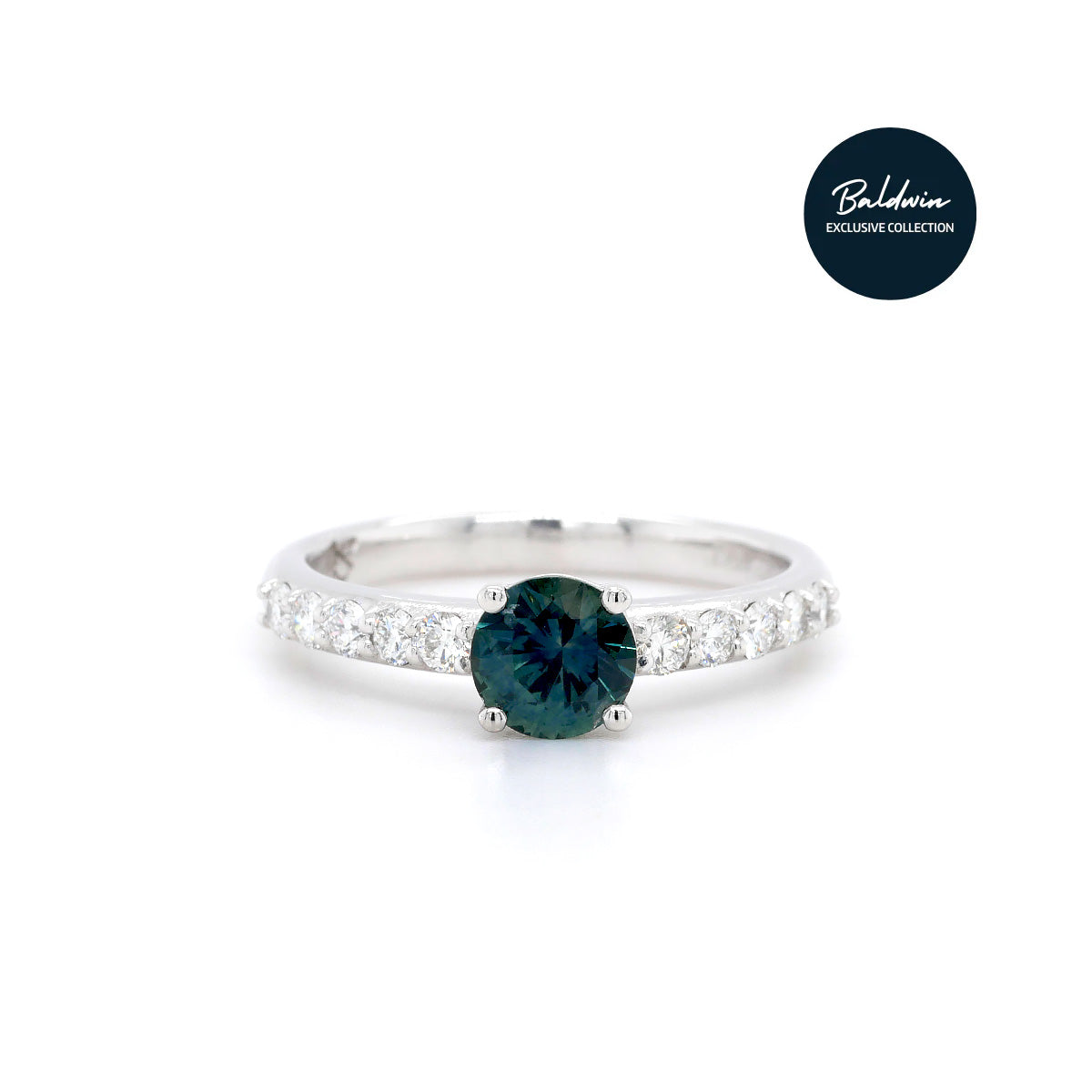 Baldwin Original Platinum Teal Sapphire and Diamond Ring