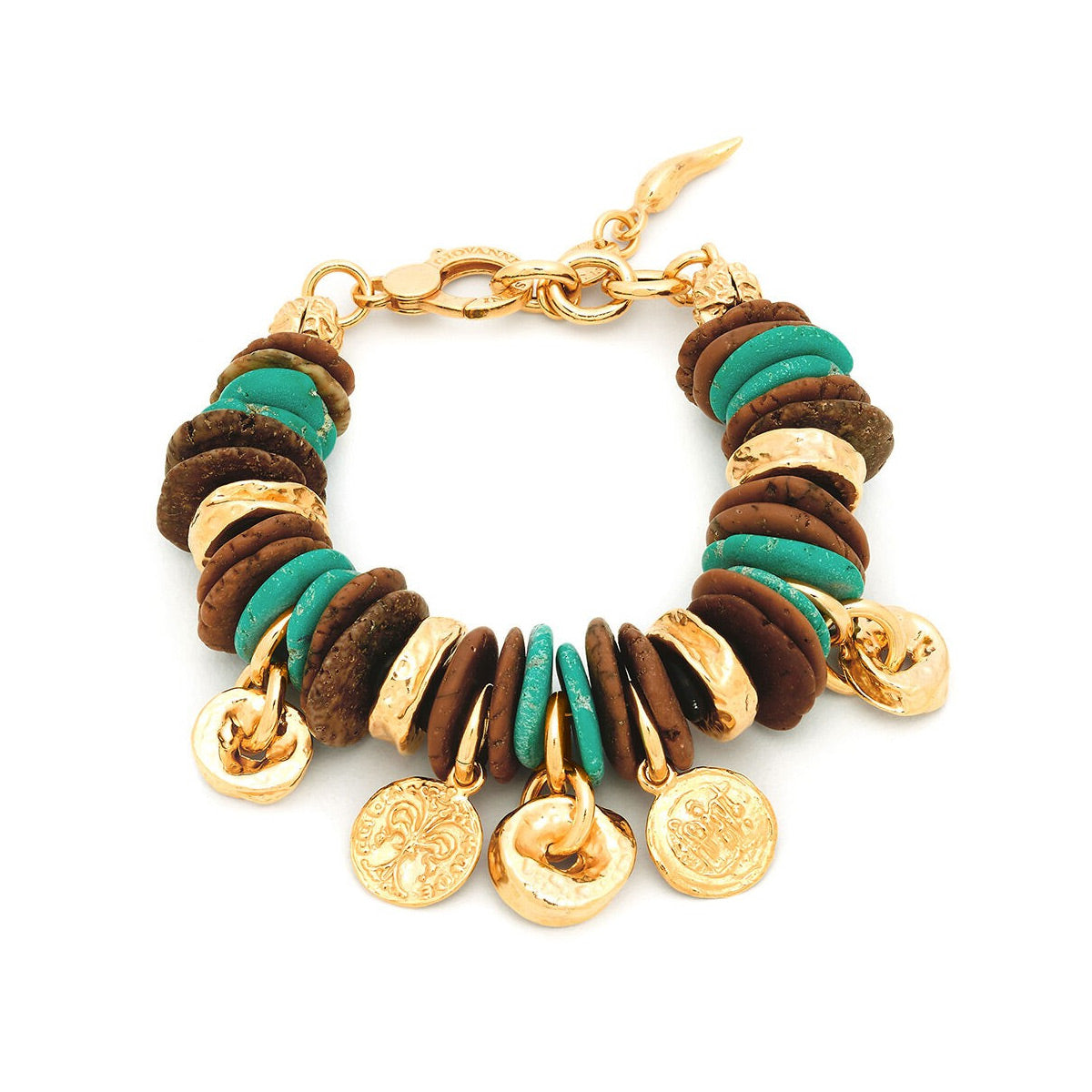 Giovanni Raspini Bali Bracelet in Gold-Plated Sterling Silver with Turquoise and Sand-Coloured Jasper 22cm