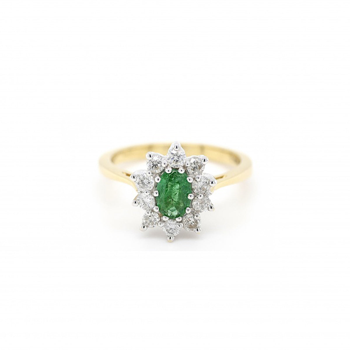 18ct Yellow & White Gold Emerald & Diamond Cluster Ring - Size N.5