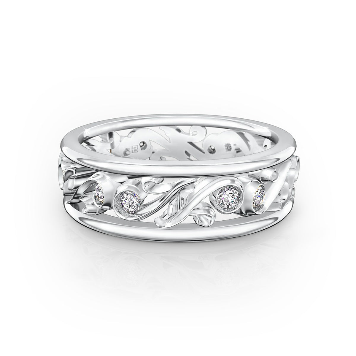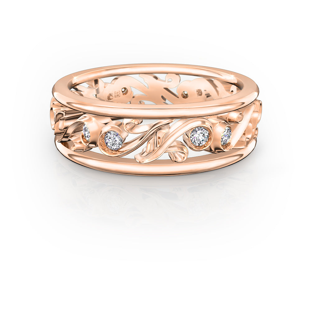 This filigree band ring is suitable as a Wedding ring, Eternity ring or as an incredible dress piece. Diamond set all the way round, the ring is priced to order based on finger size.