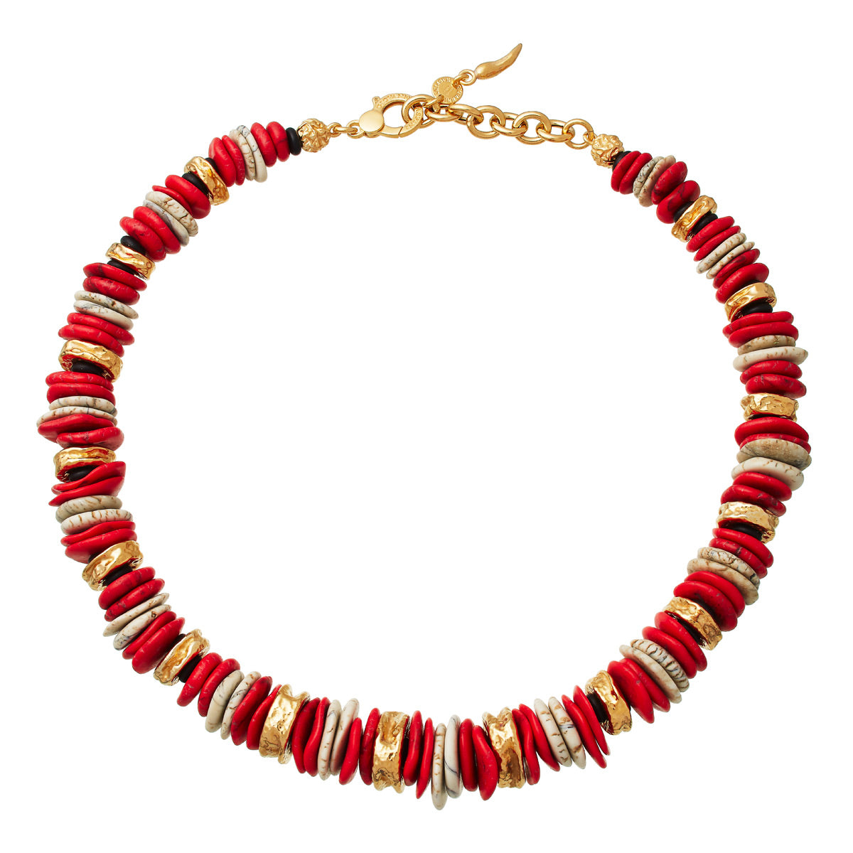 Giovanni Raspini Bali Necklace Gold Plated Silver with Madrepora Coral and Red Jasper