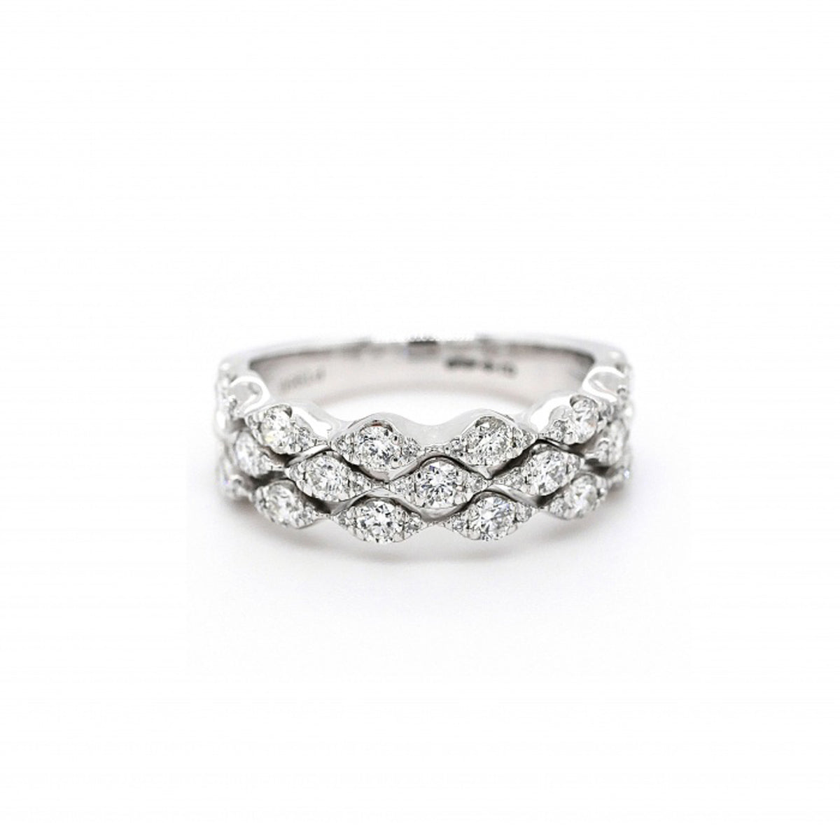 Platinum Diamond 3-Row Wave Ring