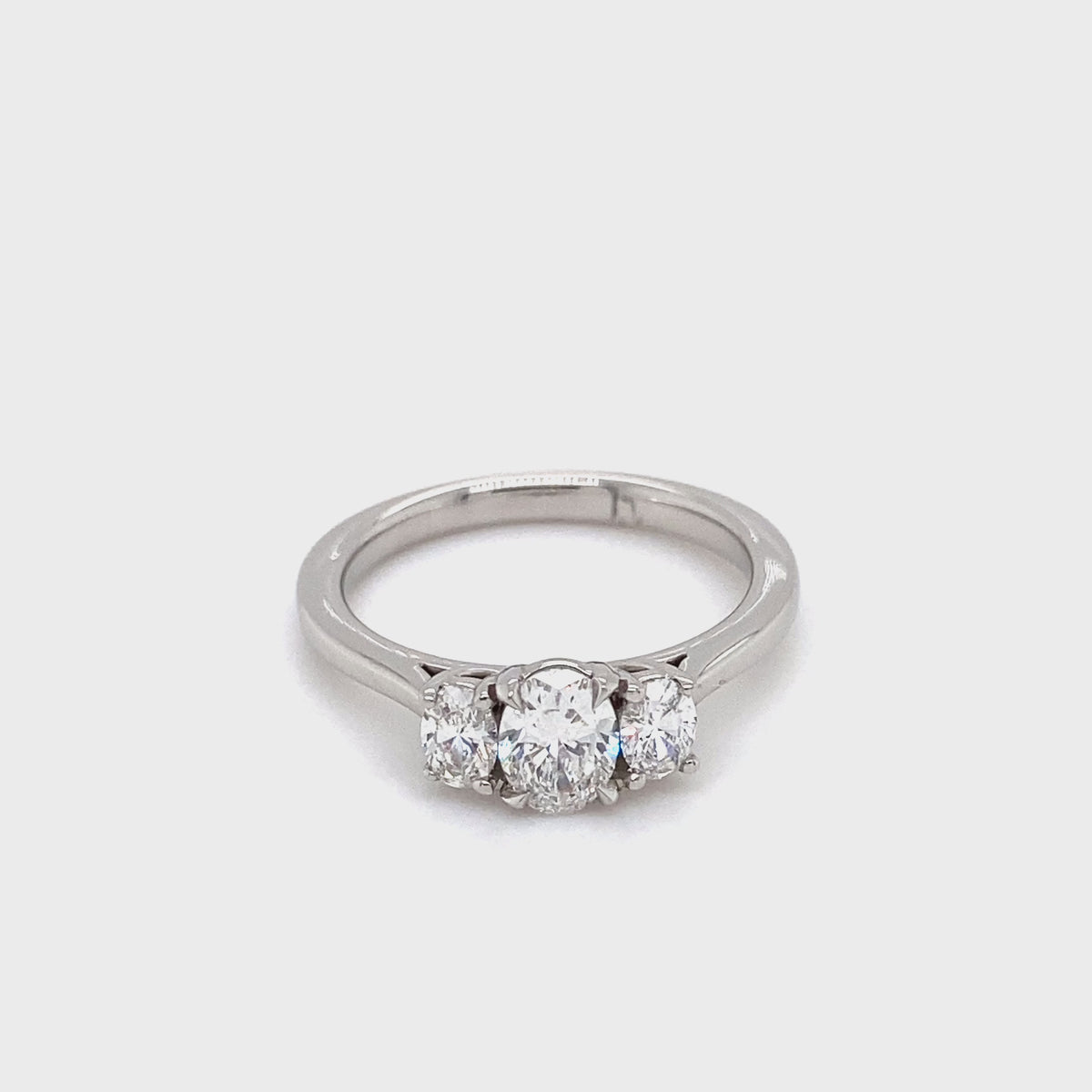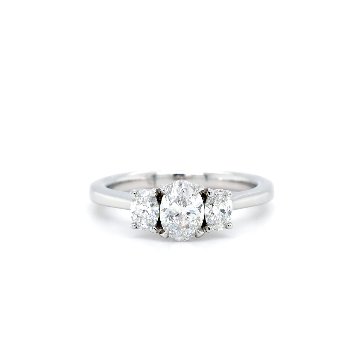 Platinum Three Stone Claw Set Oval Cut Diamond Ring (Clarity SI1 Colour E Carat 0.50ct)
