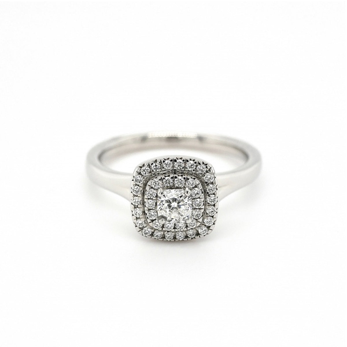 Platinum Double Halo Diamond Ring - Size M