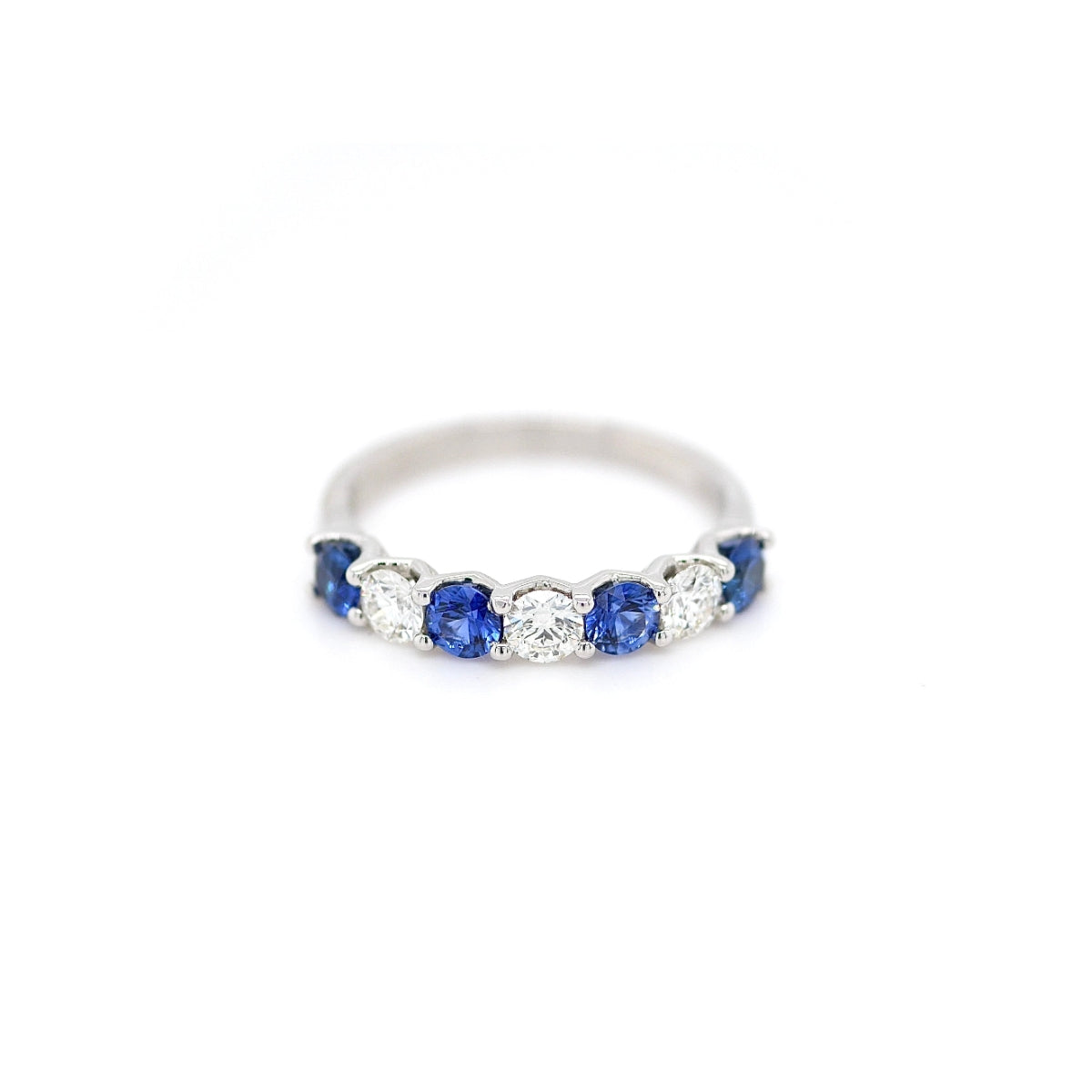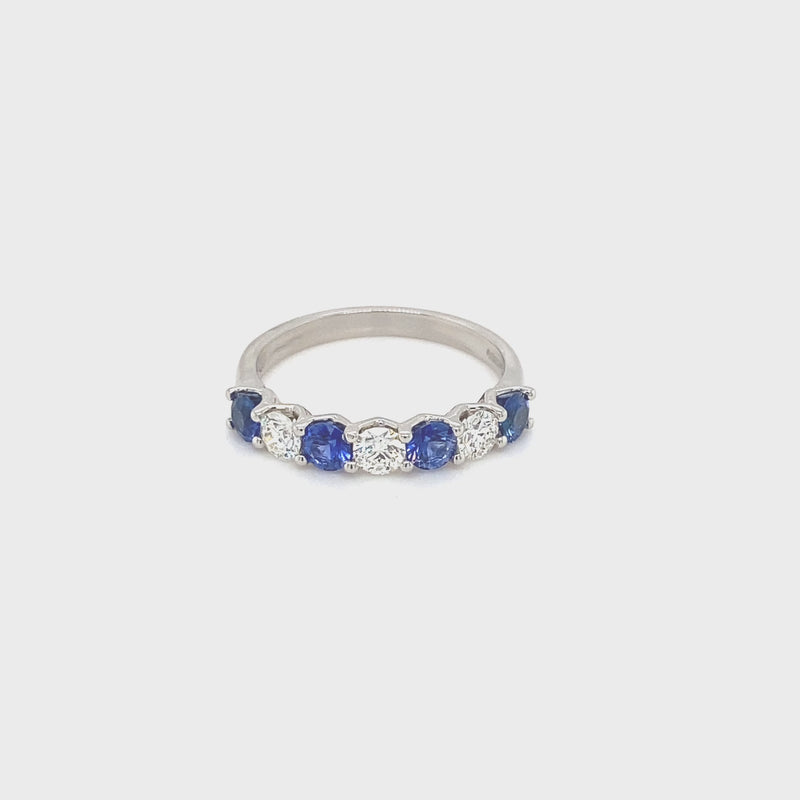 Platinum 0.69ct Sapphire & 0.43ct Diamond Half Eternity Ring - Size M