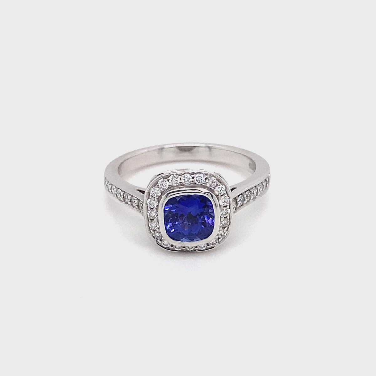 Platinum Sapphire and Diamond Halo Ring