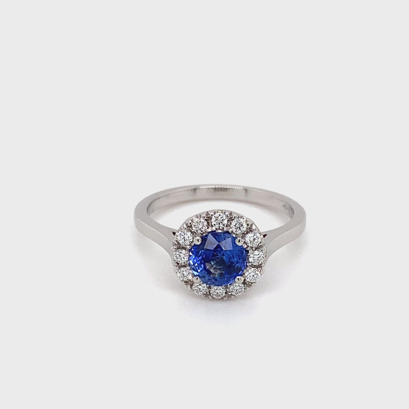 Platinum Sapphire and Diamond Claw-Set Halo Ring