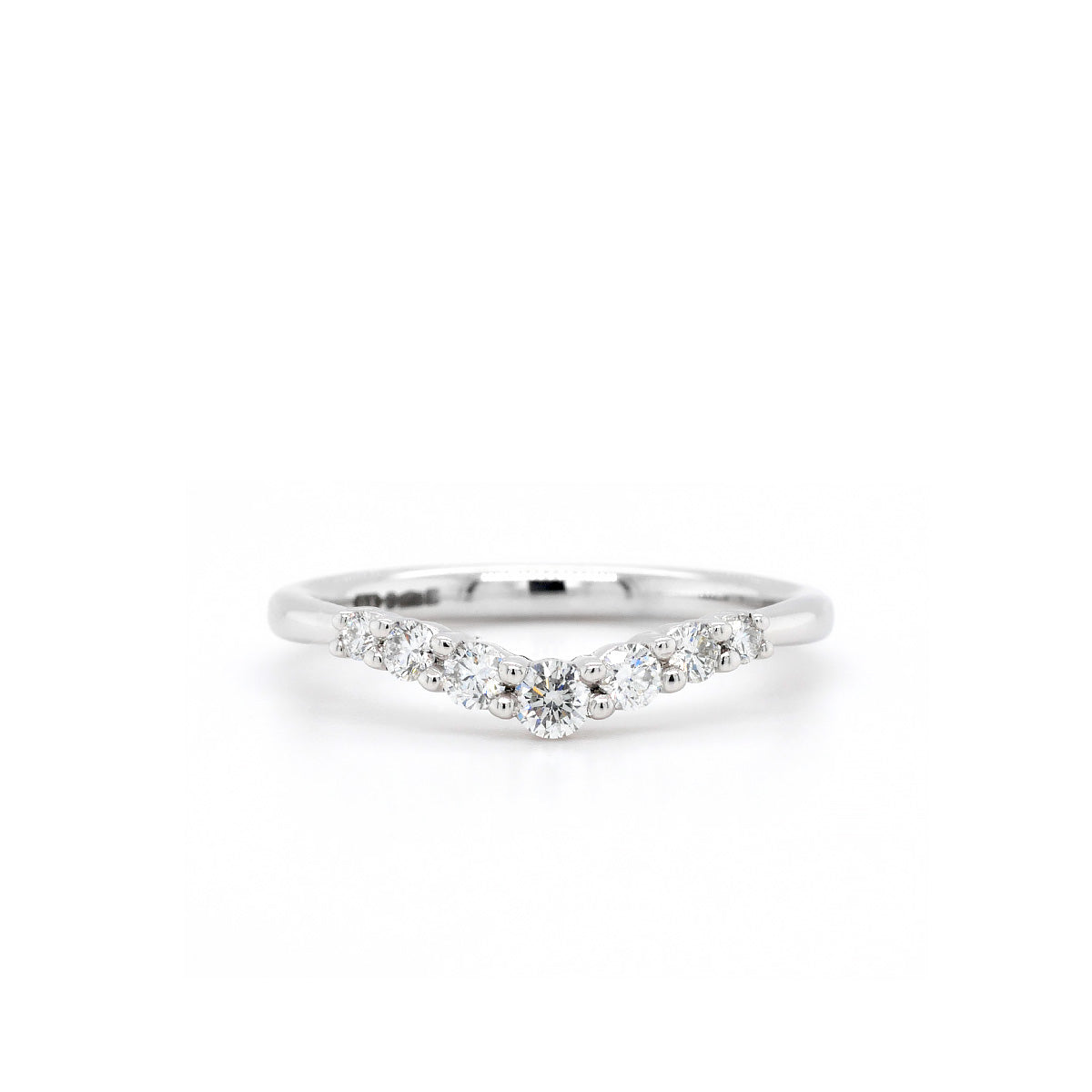 Platinum Wishbone Ring with 7 Claw Set Diamonds