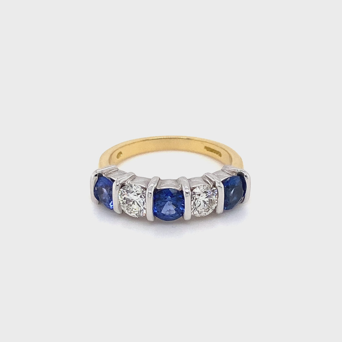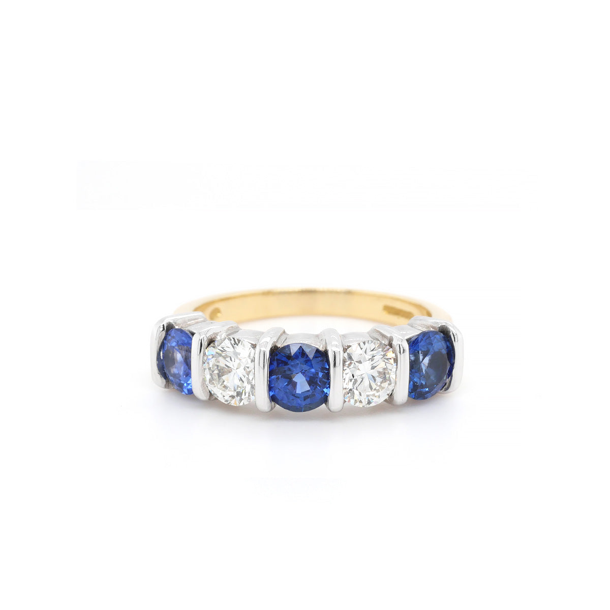 18ct Yellow Gold Sapphire and Diamond 5 Stone Ring (Carat 1.44ct, Size L 1/2)