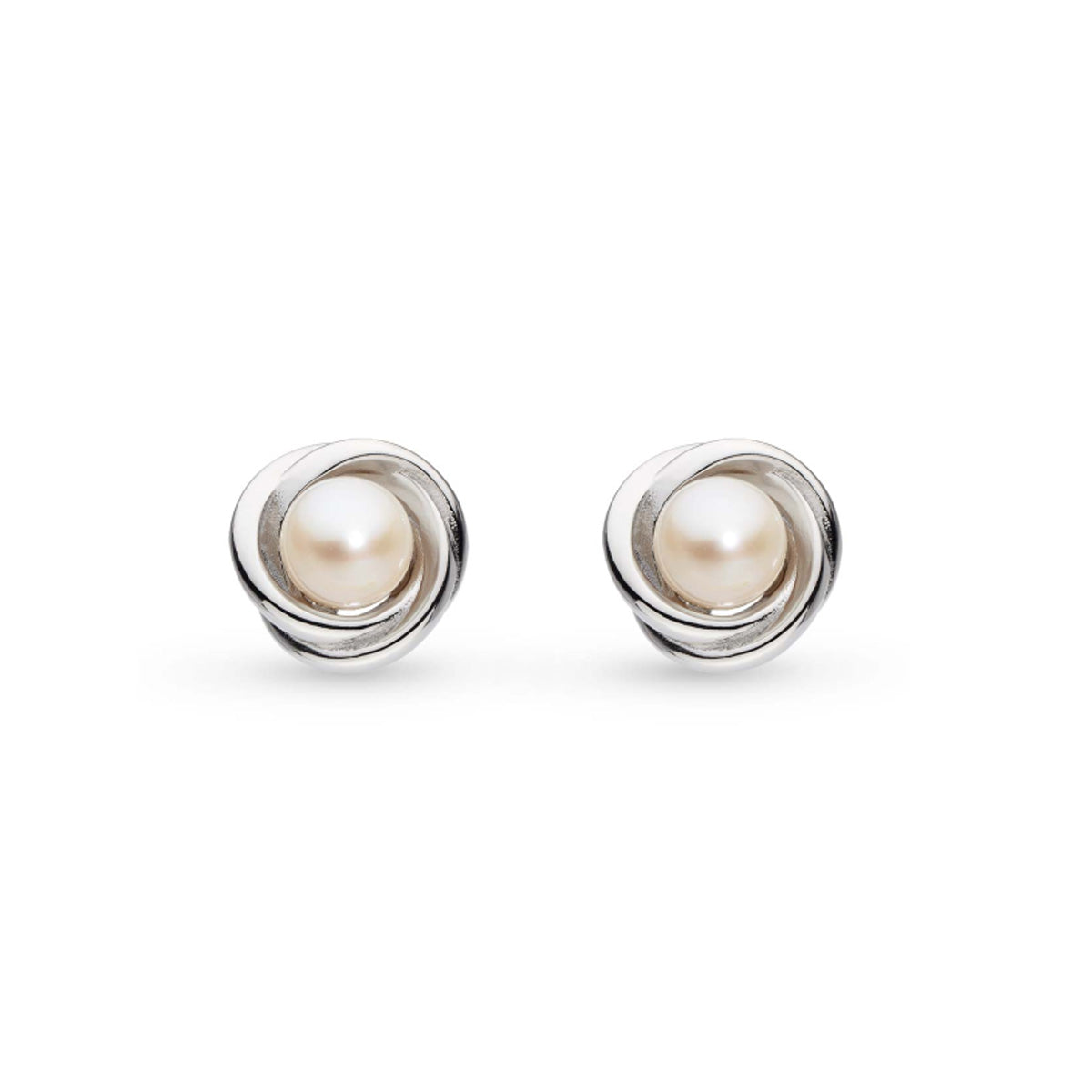 KIT HEATH Silver Bevel Trilogy Freshwater Pearl Stud Earrings