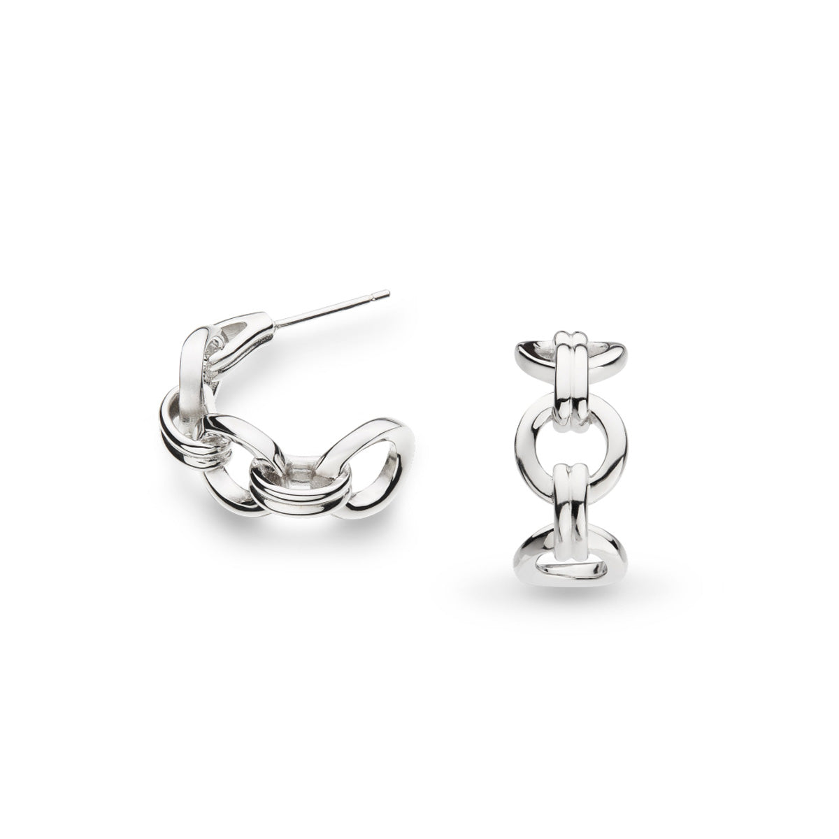 KIT HEATH Silver Rhodium Plated Bevel Unity Semi Hoop Stud Earrings