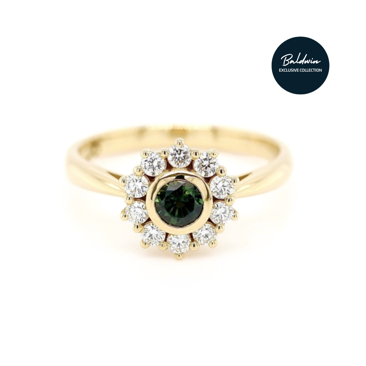 Baldwin Collection 18ct Yellow Gold Teal Sapphire & Diamond Cluster Ring - Size P