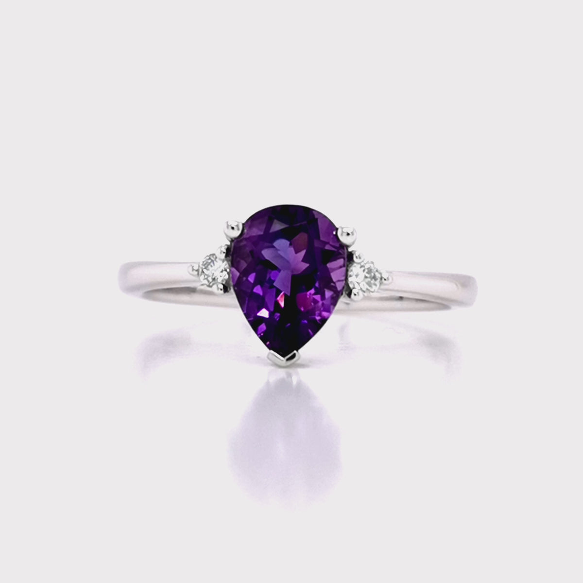 TIVON 18ct White Gold Pear Cut Amethyst and Diamond Ring